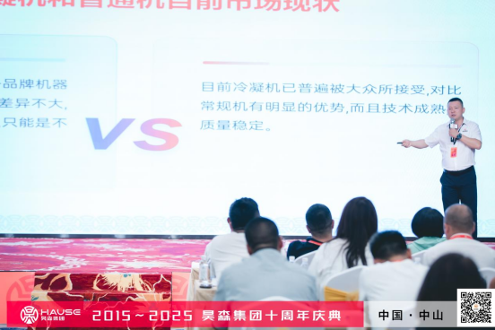昊森销售总监巩鹏飞从一线市场的角度向来宾分享全预混销售趋势已定,相较普通壁挂炉,全预混冷凝炉的技术成熟,高效稳定的性能让越来越多的消费者信赖选购,昊森用10年的全预混研发生产经验诠释了国产品牌的硬实力。