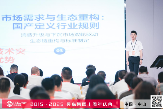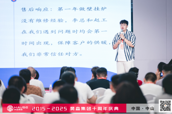 昊森集团董事长助理首席信息官温永华以《破局共生智赢未来》为题,面对行业大洗牌,昊森以”确定性生态”构建护城河,致力于与全国合作伙伴写国产全预混冷凝壁挂炉的新传奇!