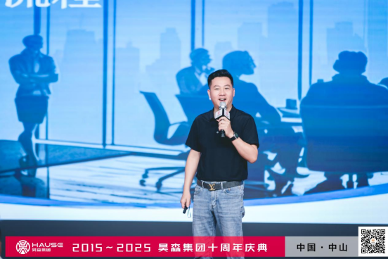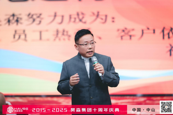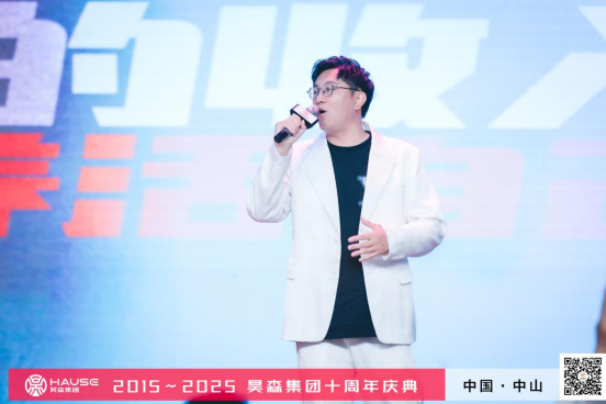昊森十周年庆典晚宴在星光与欢呼中拉开帷幕。短片《十年·追光者》回溯奋斗历程,董事长吴效峰深情致辞:昊森的十年,是合作伙伴与员工共同写就的传奇,以昊森家人为名,是兄弟之情,是金兰之义。