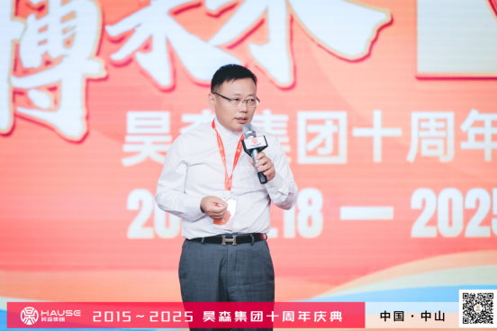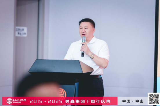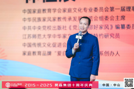 特邀嘉宾原江门军分区司令员/中国500强产业联盟执行秘书长 周慎坤、爱自然生命力的创始人 林恒辰登台分享。周司令送上真挚祝福,肯定昊森作为行业与时代见证者的价值;林院长则从家风文化切入,点明诚信务实的精神内核,为昊森发展注入文化动能。