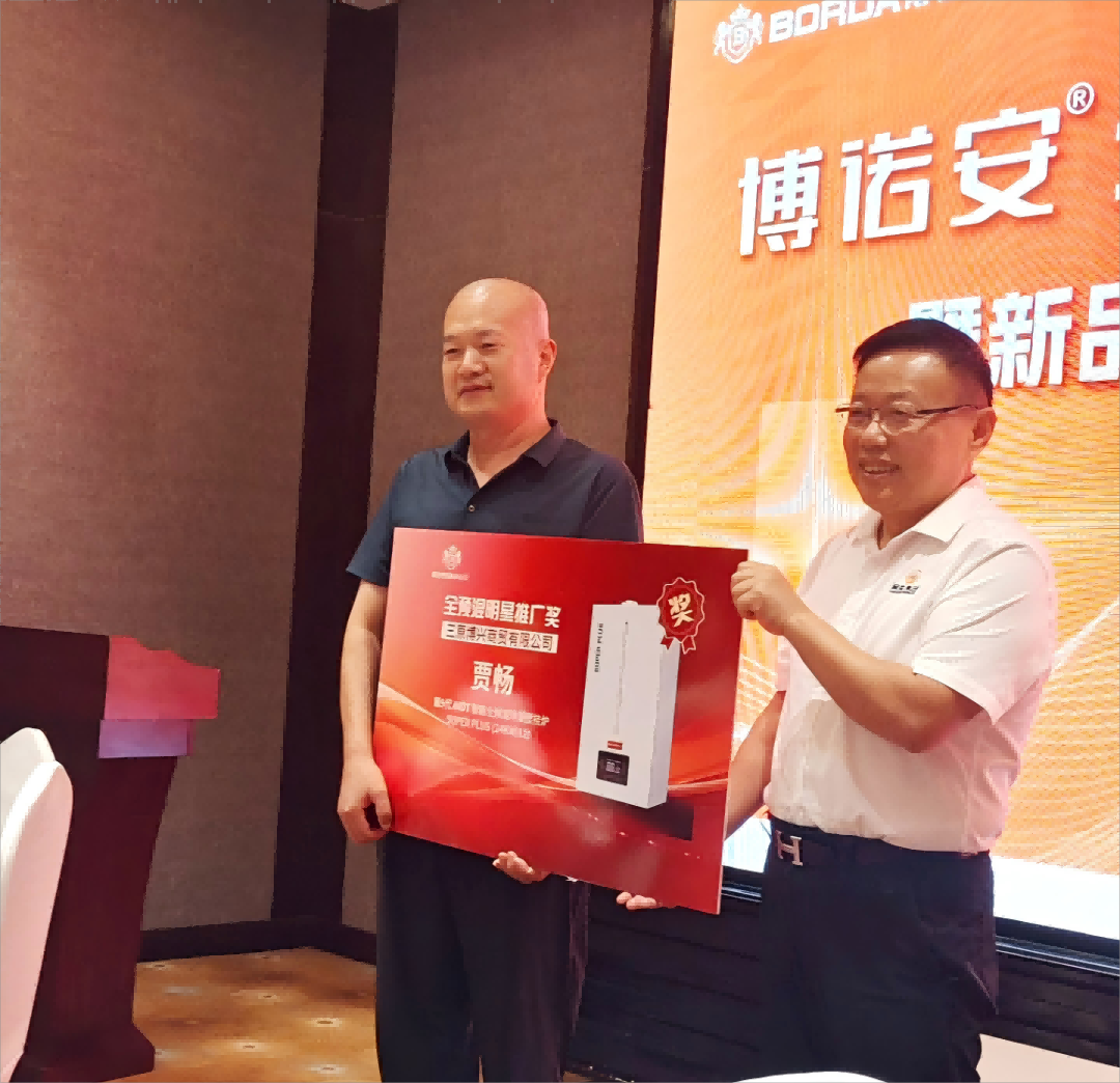 当晚的答谢晚宴气氛热烈。公司领导再次向合作伙伴表达了诚挚谢意。特别设立了“全预混明星推广奖”,表彰了明星合作伙伴贾畅的突出贡献,并授予其一台SUPER PLUS 24KW壁挂炉作为奖励。